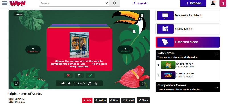 Tarphi gives teachers more flexibility and provides detailed control settings for assignments. Also, it provides students with options to choose how they want to play: study mode or solo game mode.