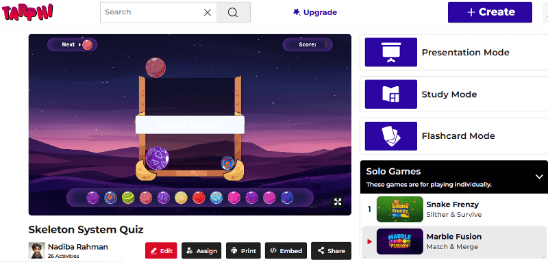 Tarphi is a complete K–12 instruction and assessment platform that includes game-based quizzing but goes further. It supports actual teaching and learning, not just gameplay. Tarphi combines activities, lessons, study tools, games, assignments, and analytics into a single, classroom-friendly system.
